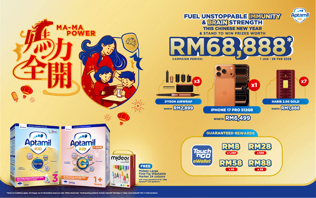 This contest is running at Lotus’s stores, AEON stores, AEON BIG stores, Majanku stores, Aptamil KID official stores on Lazada and Shopee, and other participating outlets.